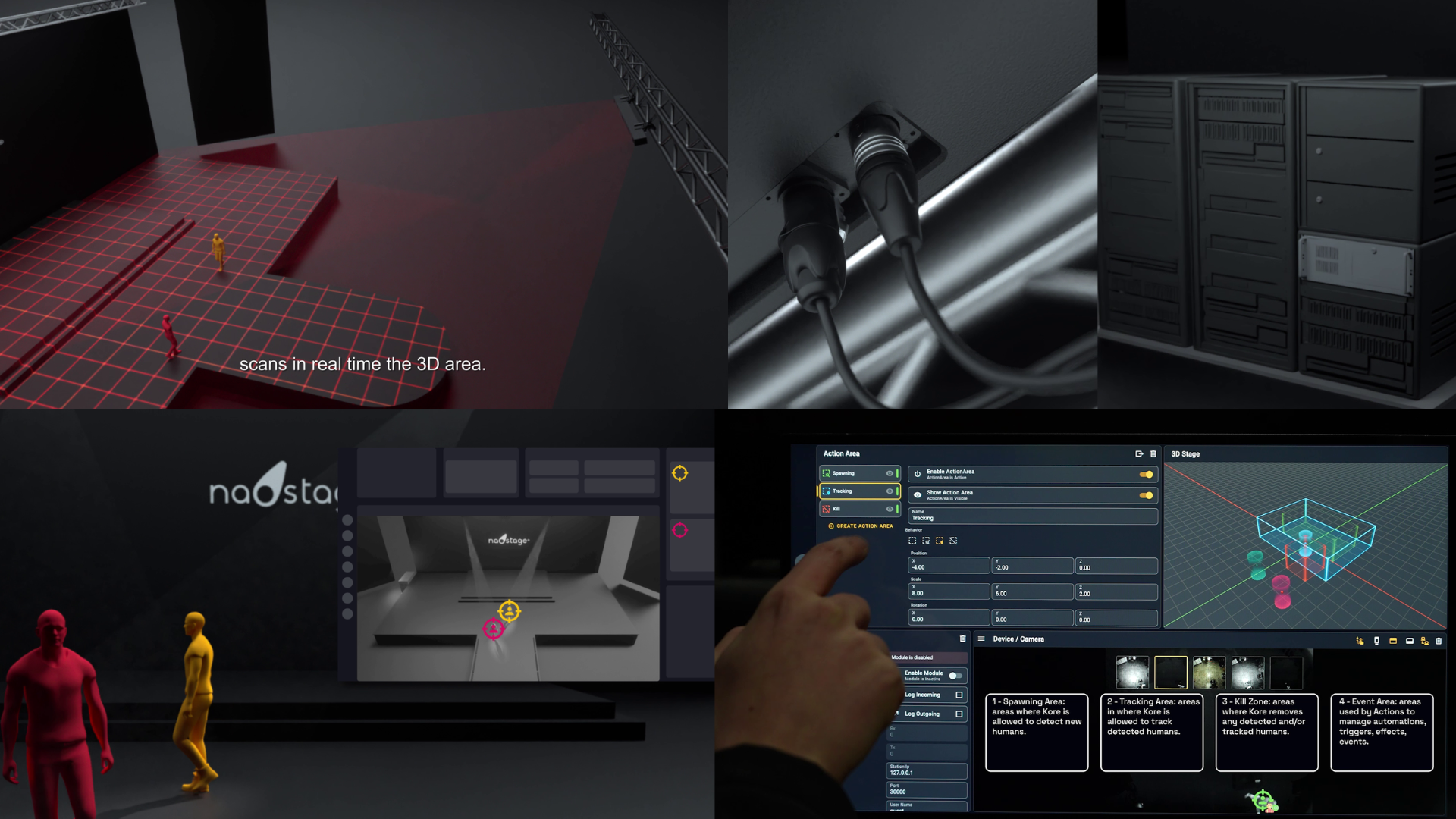 Il sistema Naostage è composto da tre elementi di cui due hardware, KAPTA e KORE, rispettivamente sensore e server, e KRATOS, un software per la gestione dell’interfaccia di configurazione.