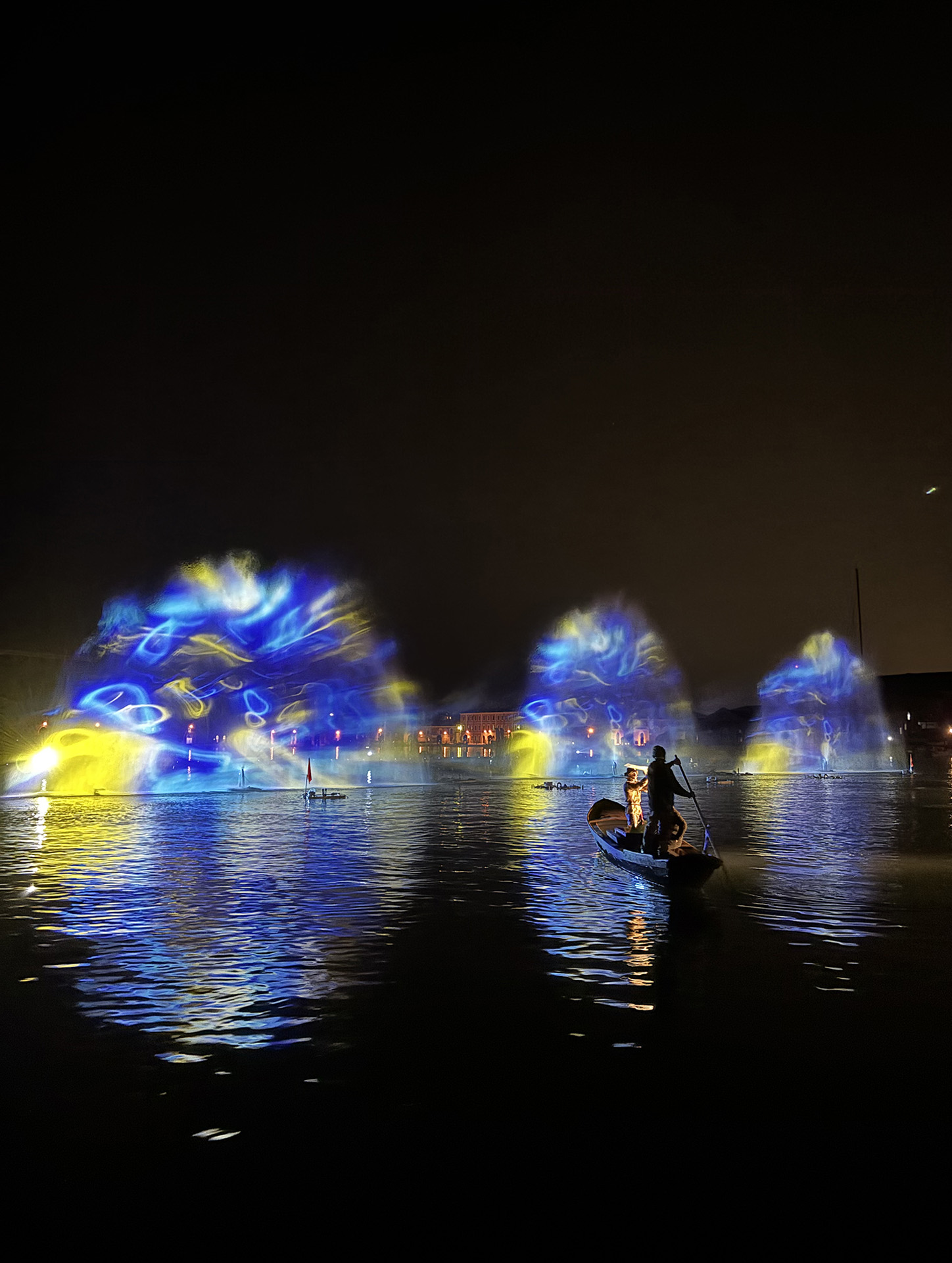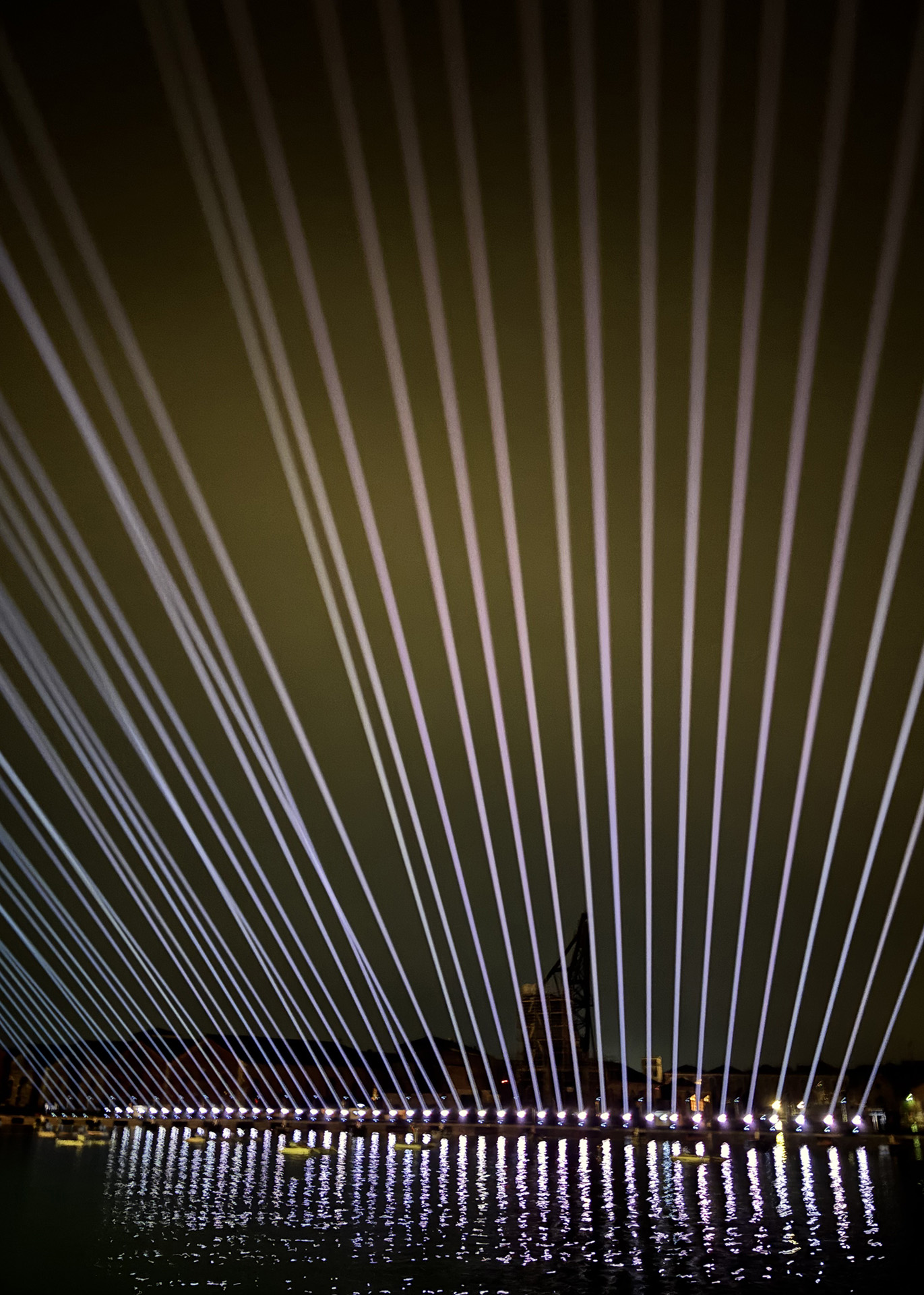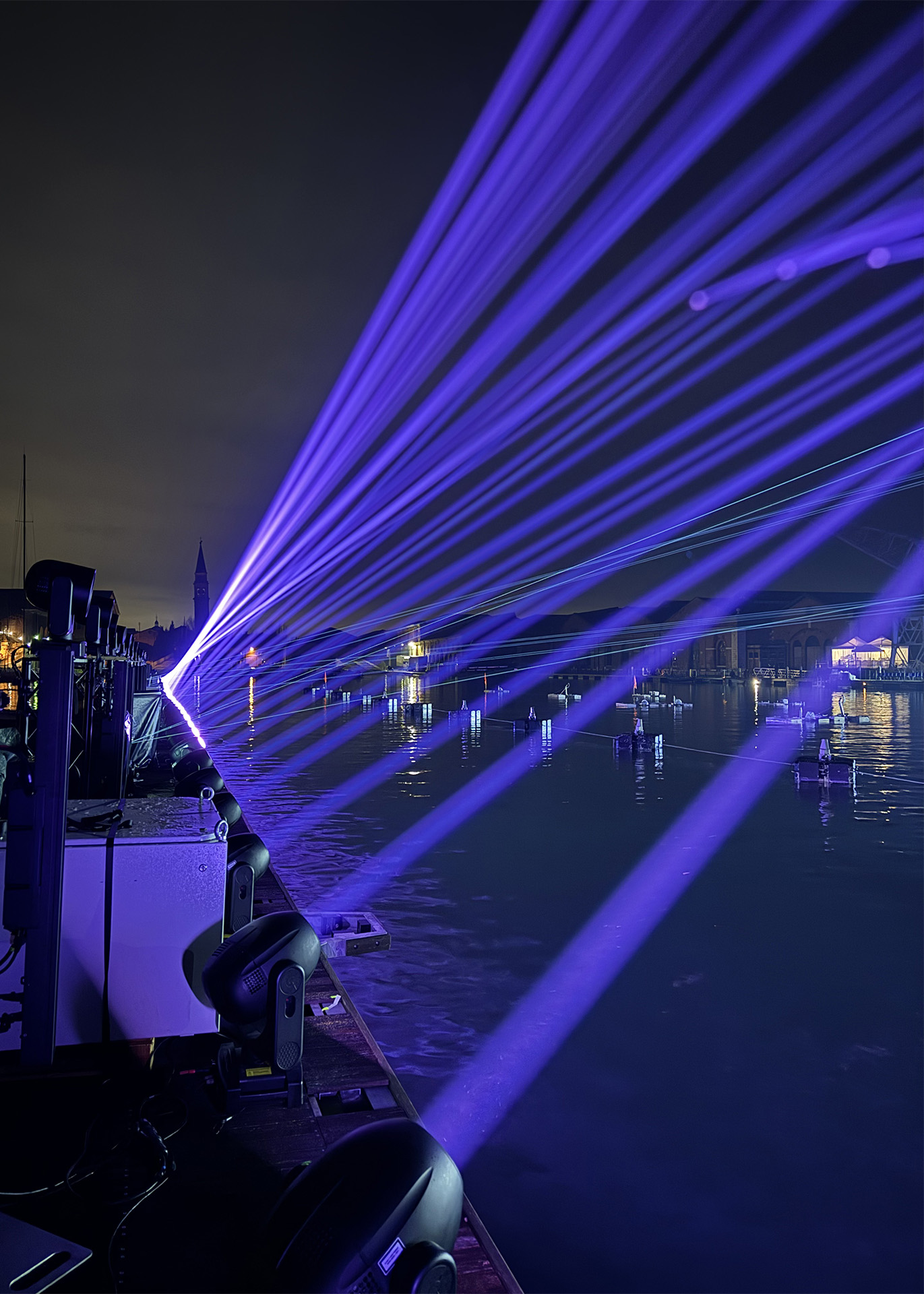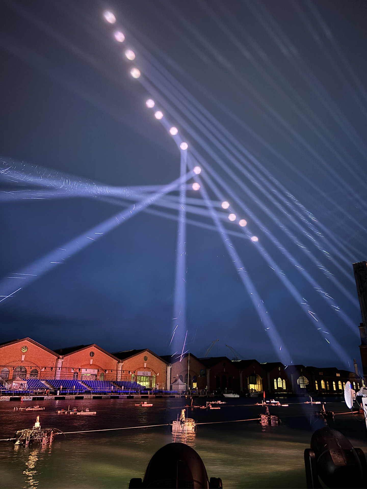 Per affrontare la sfida di uno show che ha luogo letteralmente sull’acqua, il committente Vela SpA ha richiesto al partner tecnico Titan Sound&Light proiettori full IP.