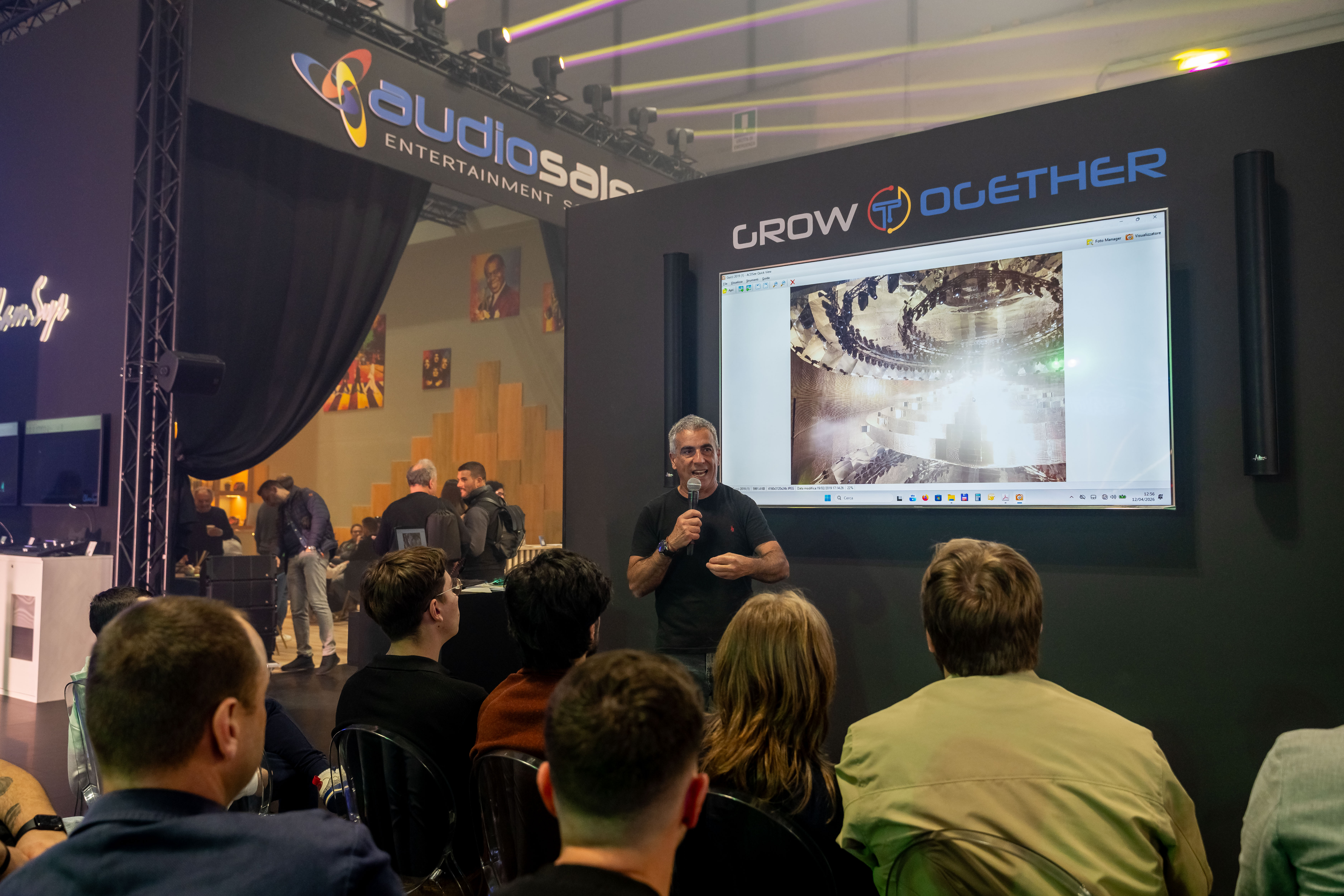 Jo Campana: Ho presentato tre esempi pratici, dal "tovagliolo di carta" al rendering finale, spaziando tra teatro, palazzetti e stadi. Il messaggio era chiaro: la dimensione non conta. Puoi fare uno show incredibile con 10 fari se hai un’idea forte, così come puoi averne 1000 e risultare banale. È sempre l’idea quella che vince.