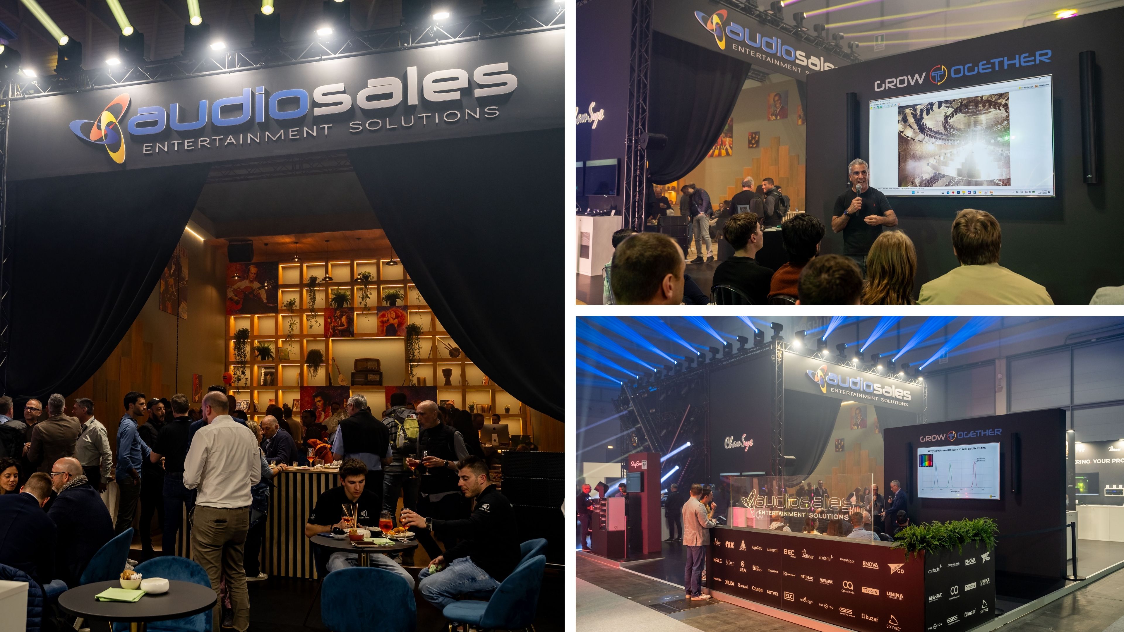 Il concept dello stand è stato pensato e organizzato per valorizzare al meglio le diverse anime dell’azienda: mondo audio, lighting e sistemi integrati, più la zona hospitality e l’area Grow Together, dedicata all’educational, un’altra attività che da sempre contraddistingue Audiosales.