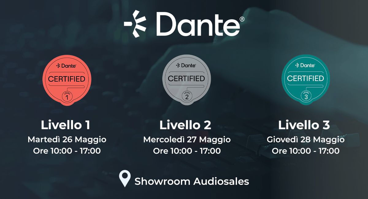 Il training di formazione Dante del 26, 27, 28 Maggio 2026 si terrà in aula e sarà condotto in lingua italiana da Senio Corbini, Product Specialist Audiosales.