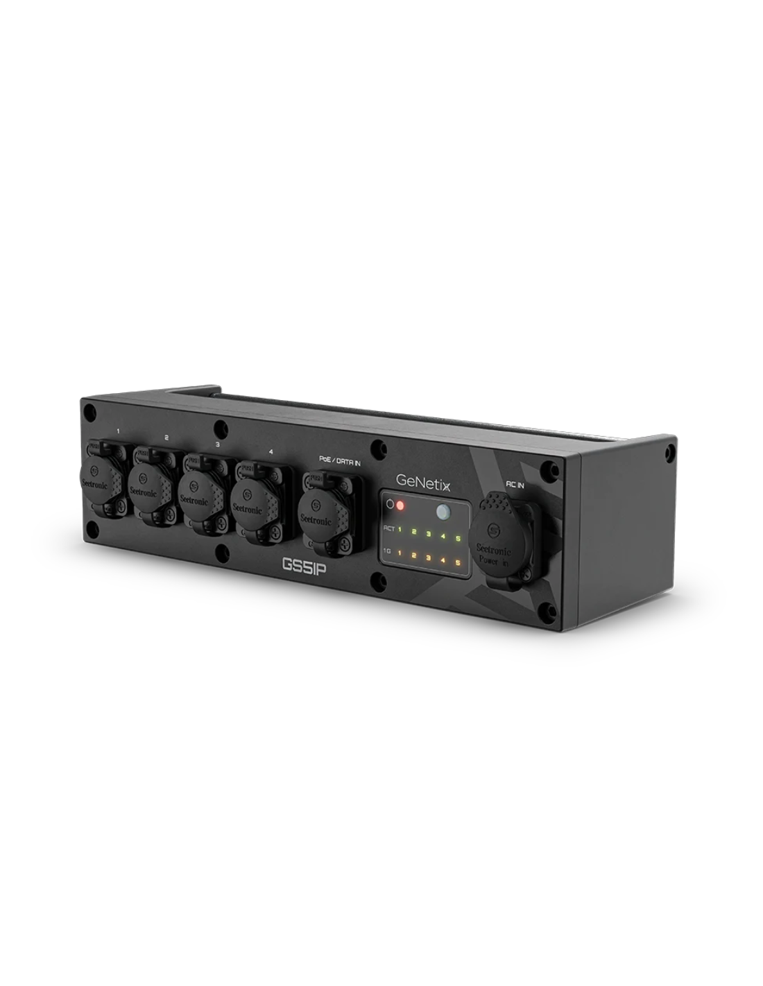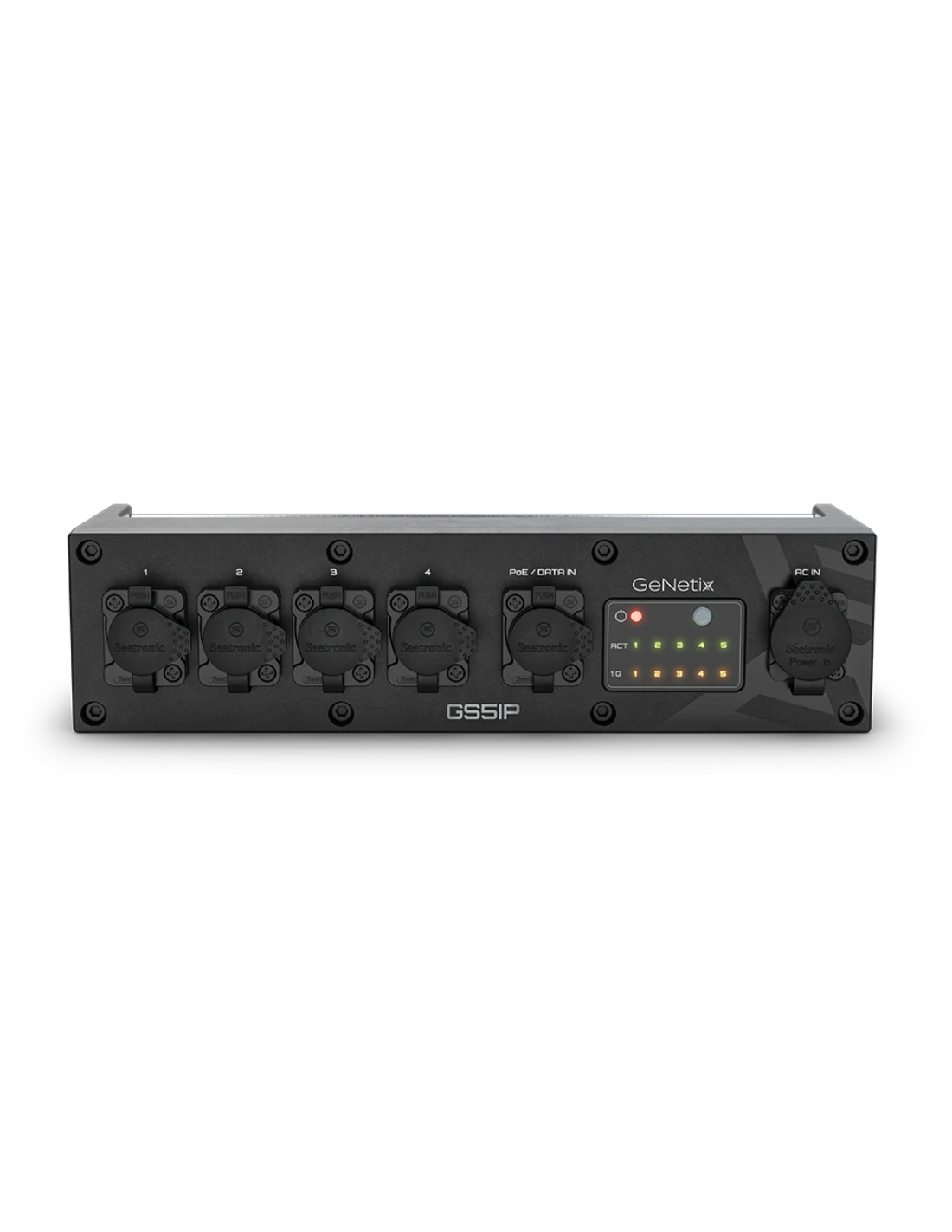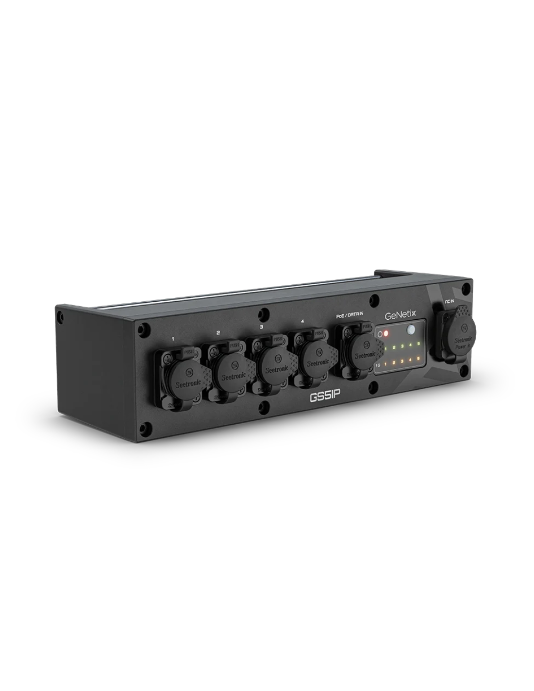 Contattaci subitoGeNetix Switch 5IP è uno switch di rete Gigabit unmanaged a cinque porte, classificato IP65, che può essere alimentato sia tramite PoE che tramite alimentazione di rete con il connettore di ingresso di rete PowerCon True1.