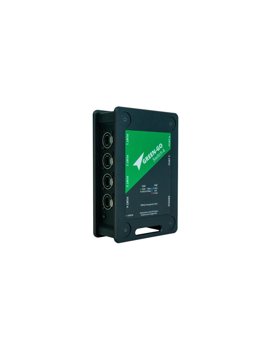 Si tratta di uno switch di rete a raffreddamento passivo, con sei porte PoE(+) 10/100/1000 Mbit, progettato per gestire più protocolli dati senza sovraccarichi. Il supporto PTPv2 garantisce la sincronizzazione ottimale quando utilizzato con l’antenna Green-GO STRIDE.