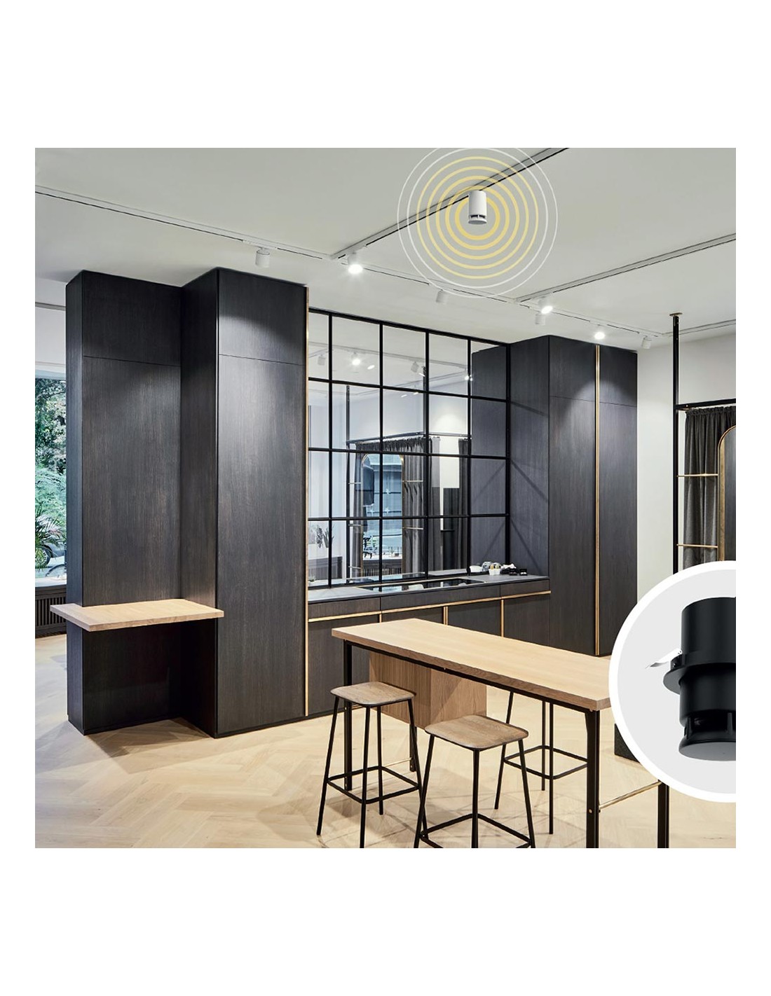 Il caratteristico design acustico garantisce una copertura audio uniforme su tutta l'installazione. Questo diffusore è stato progettato per tutte le situazioni in cui l'esperienza del cliente viene messa al centro dell'attenzione, come ad esempio negozi, hotel, ristoranti e cafè. L'installazione a binario garantisce un notevole risparmio nei tempi di allestimento e di riposizionamento dei diffusori. Inoltre, la connessione wireless permette di realizzare allestimenti estremamente ordinati e l'interfacciamento Cloud garantisce una perfetta sincronizzazione e distribuzione dei contenuti.