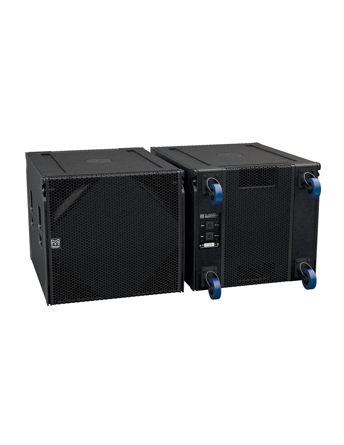 È equipaggiato con un driver frontale da 18” (460mm) e un driver nella parte posteriore da 14” (356mm), ciascuno pilotato in modo indipendente da canali d’amplificazione separati e dai DSP.