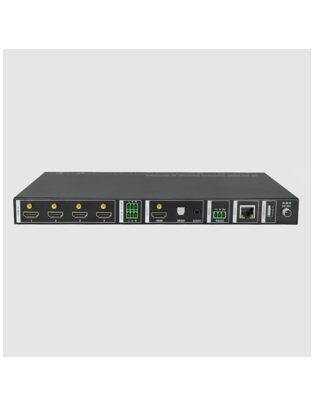 Contattaci subitoIl NewHank HS4x1 è uno switcher scaler HDMI 4K Multi-view senza interruzioni, progettato per consentire una visualizzazione 4K reale. Lo switcher dispone di quattro ingressi HDMI e un'uscita HDMI, che permettono di visualizzare quattro sorgenti video su un unico schermo. Inoltre, offre un ingresso di linea, un ingresso mix, un'uscita SPDIF e un'uscita analogica per l'elaborazione audio. Script Lua plug and play disponibile per Xilica.