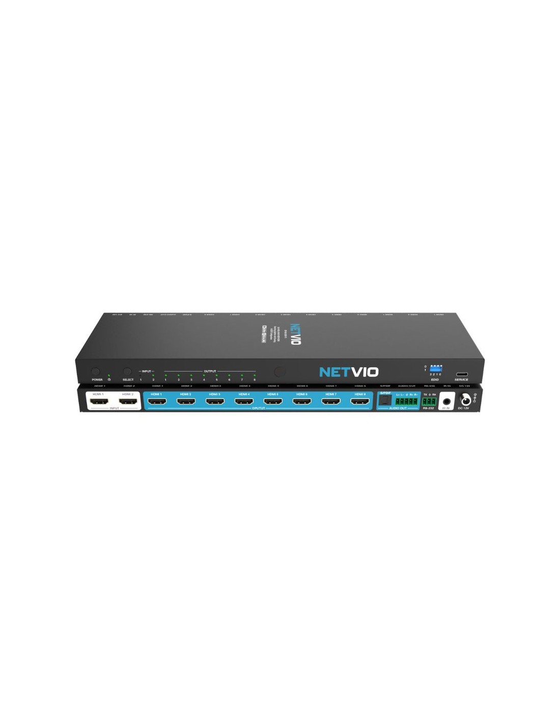o Outputs: 8 × HDMI (Type-A), 1 × Optical S/PDIF, 1 × L/R balanced/unbalanced (Phoenix)